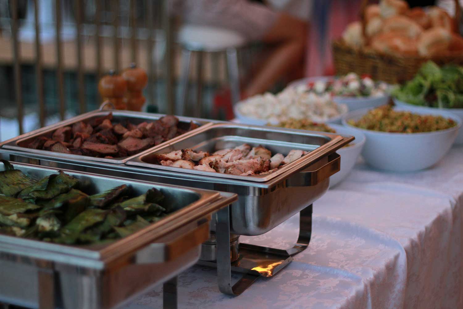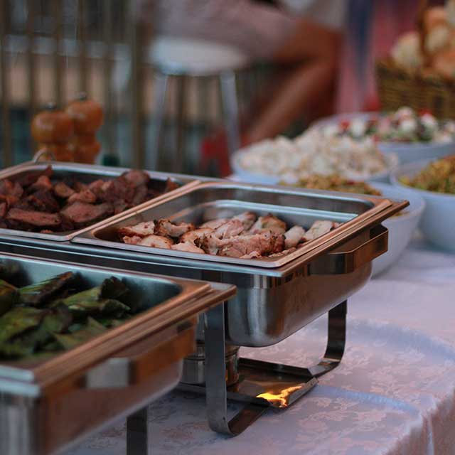 We set up a beautiful food station where guests will serve from – buffet tables dressed with linen and all equipment to serve your food selection (tables provided).